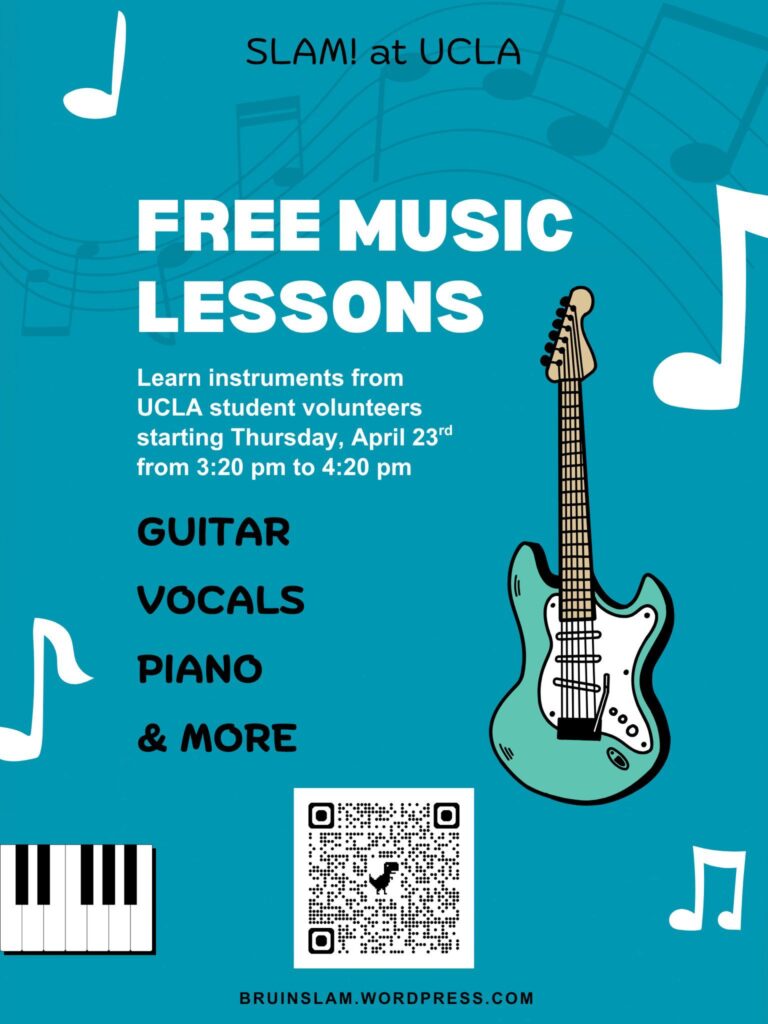 UCLA students are going to start free weekly, after-school music lessons for an hour starting next week. Schedule is below! Lessons held in Emerson’s music room. They will use those instruments and bring additional instruments. Scan QR code or click here to sign up.